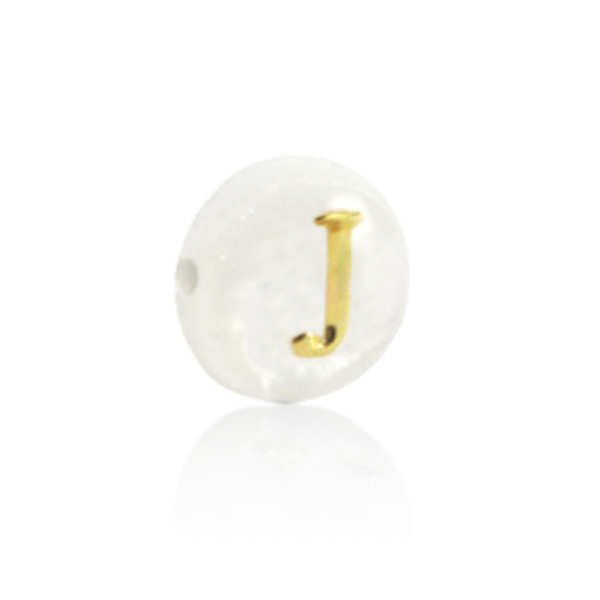 Alphabet Letter Shell Bead Mother of Pearl White 6x4mm with Golden letter J