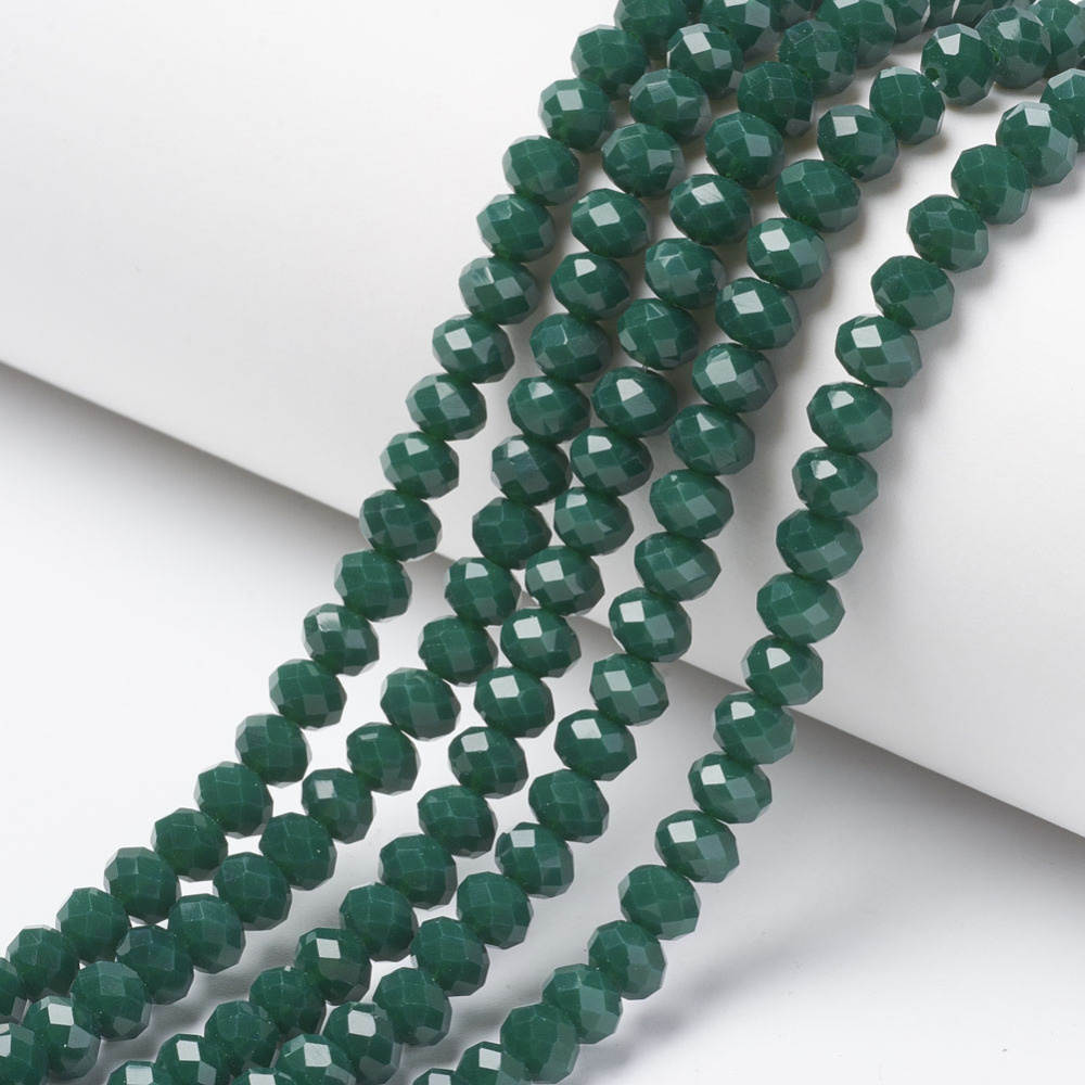 Faceted Glassbeads Dark green 8x6mm, 65 pieces