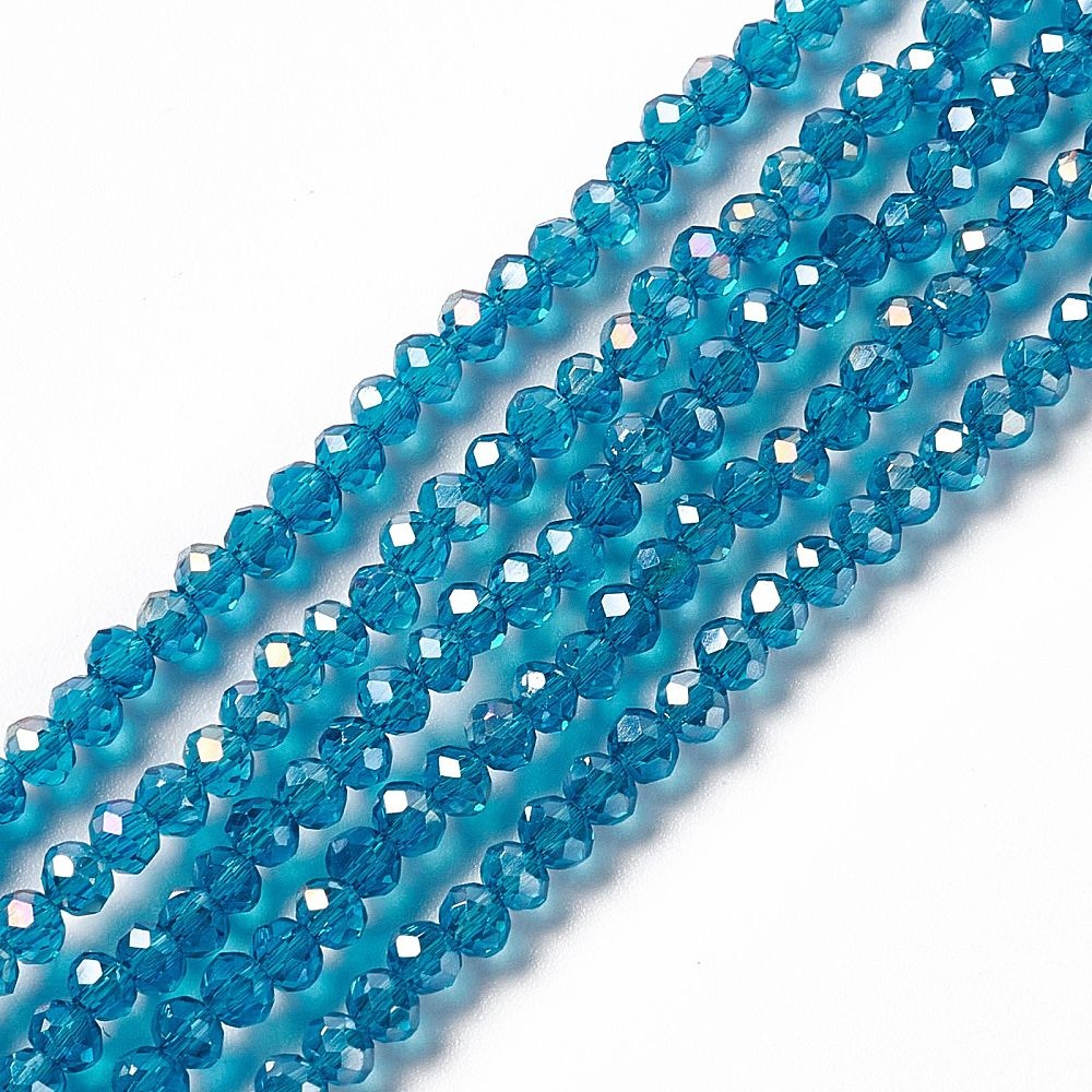 Faceted Glassbeads Electroplate Petrol Blue 3x2mm, strand 140 pieces