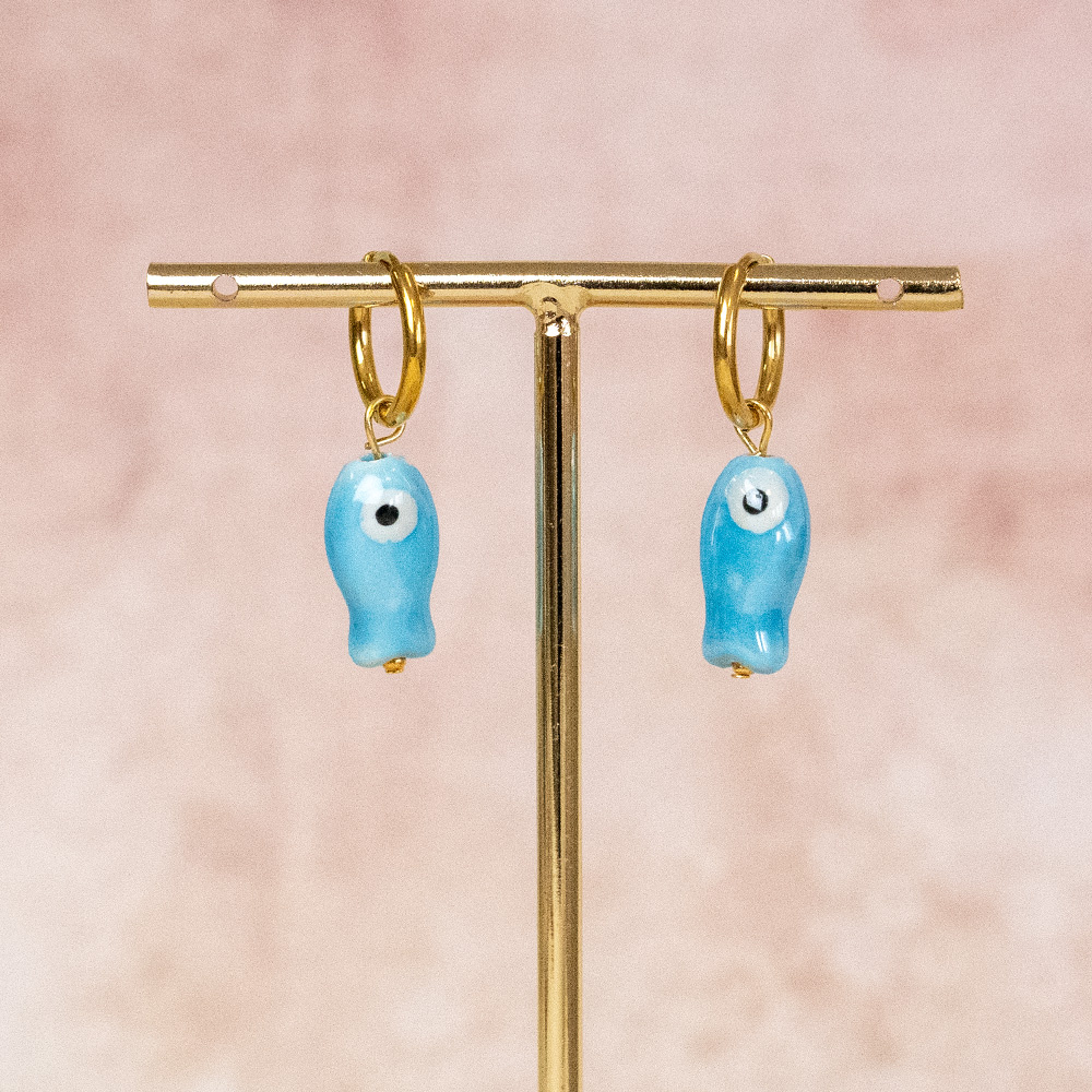 Fish Porcelain Ceramic bead Light Blue 19x10x8mm