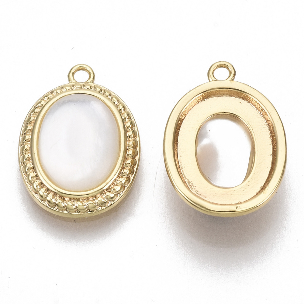 Natural Shell Charm Oval Gold Plated 15x11x3.5mm
