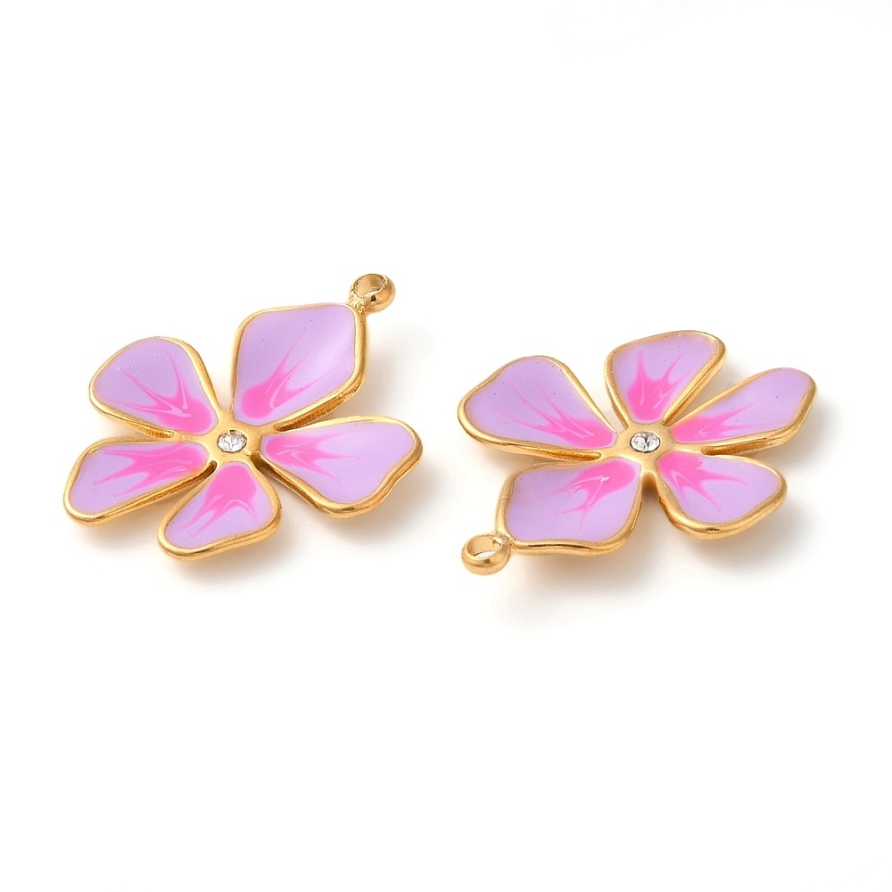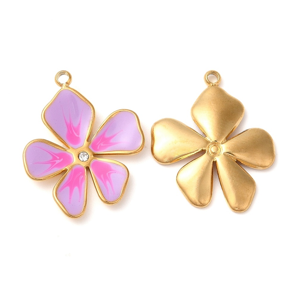 Stainless steel flower lilac charm gold plated 21.5x17x2.5mm