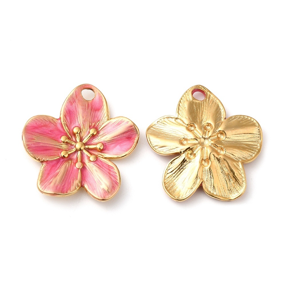 Stainless steel flower pink charm gold plated 24.5x22.5x2.5mm