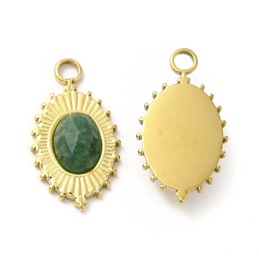 Stainless Steel Gemstone Charm Faceted African Jade 22x12x4mm