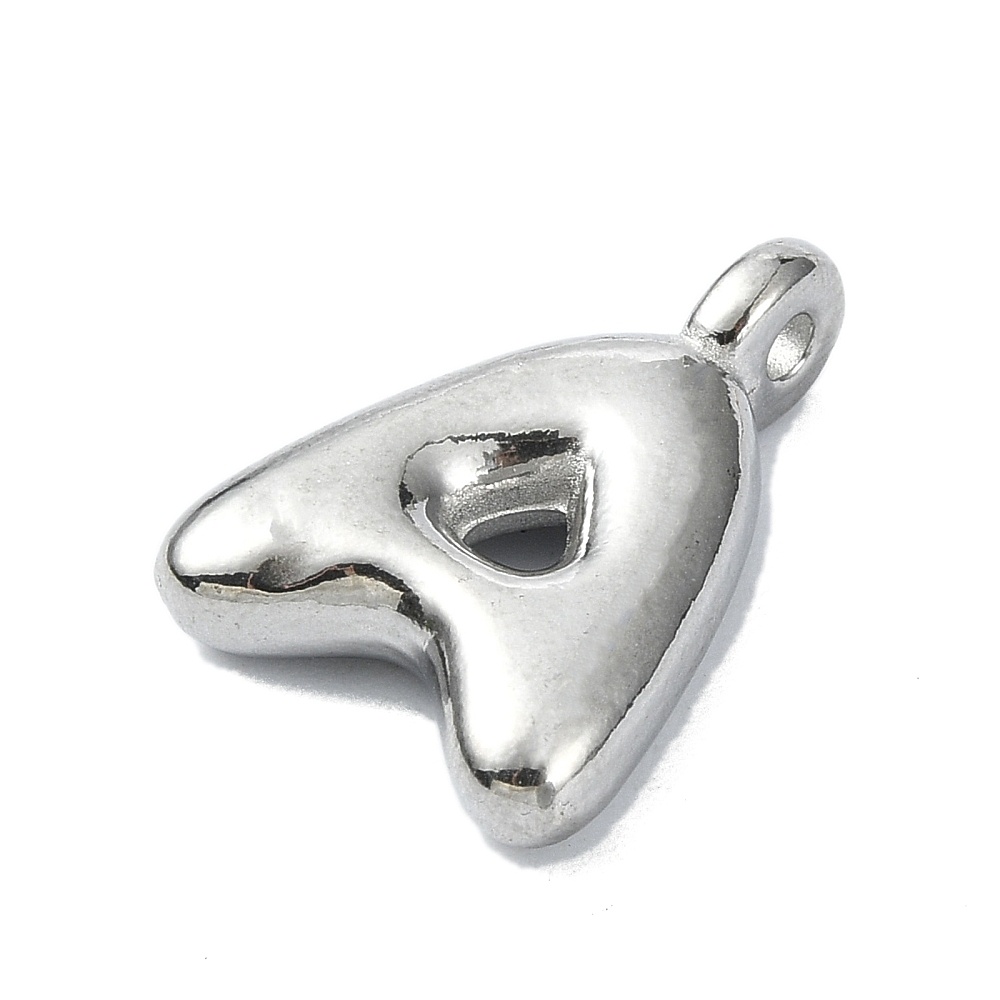 Stainless steel letter/initial charm silver plated 18~20x9~15.5x4mm, per piece