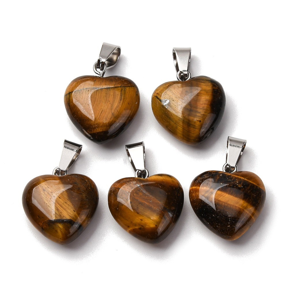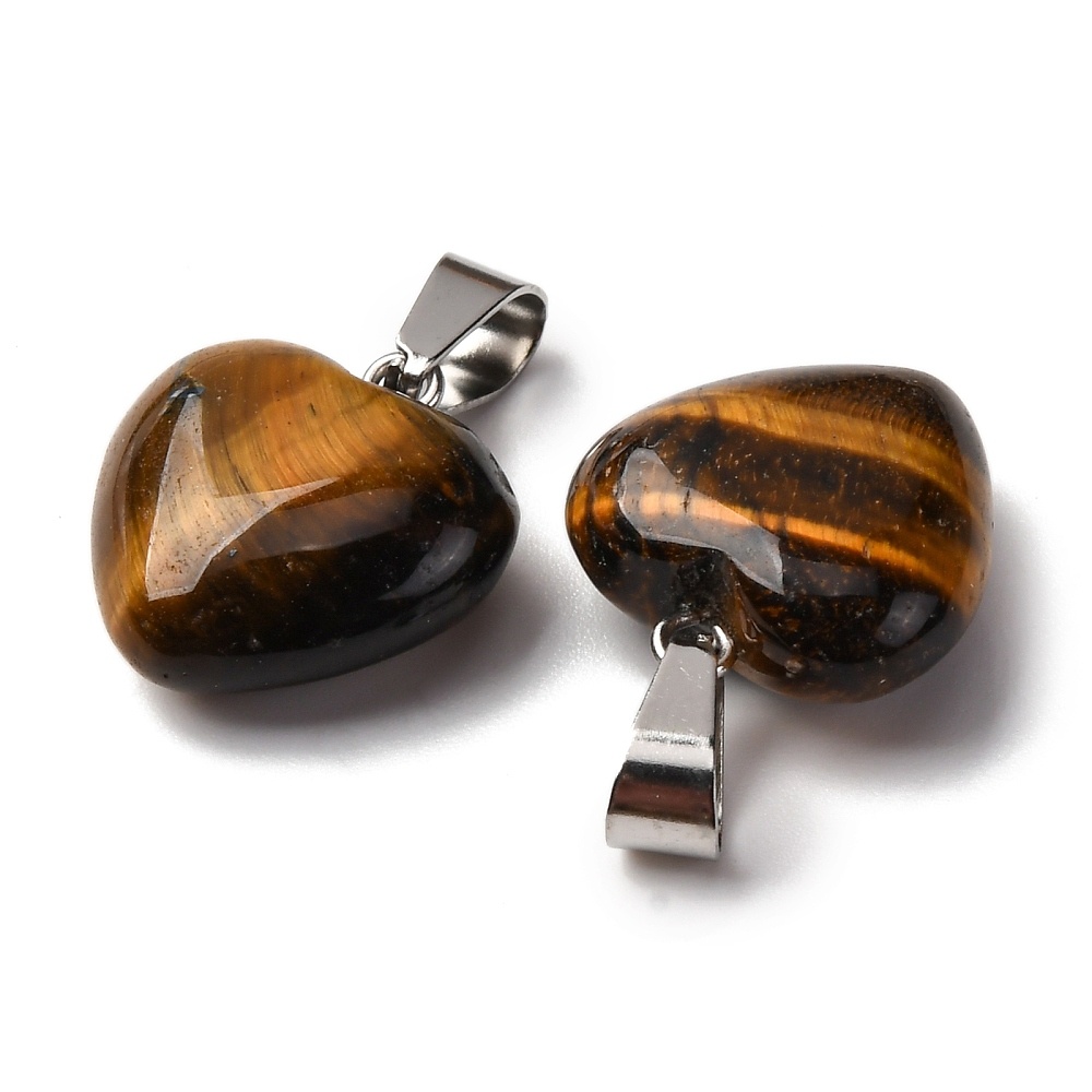 Natural Tijgeroog Bedel Hart Zilver 18~19x15~15.5x7~10mm