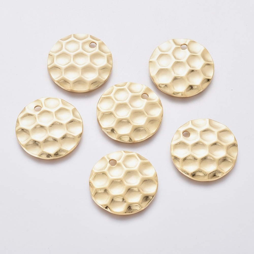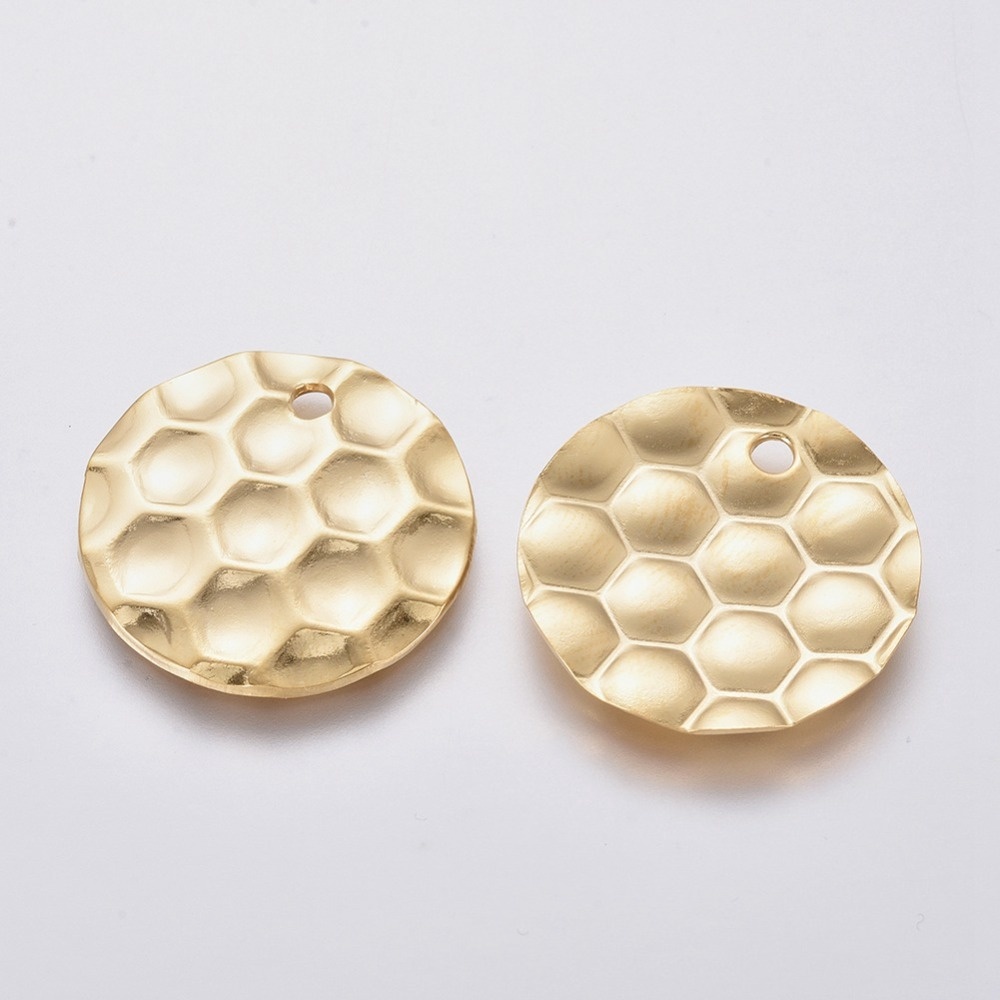 5321 Stainless Steel Bedel Honingraat Print Goud 20mm, 5 stuks