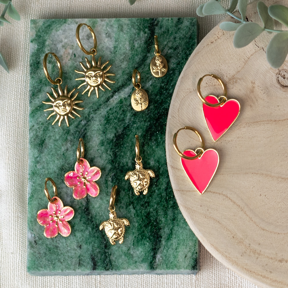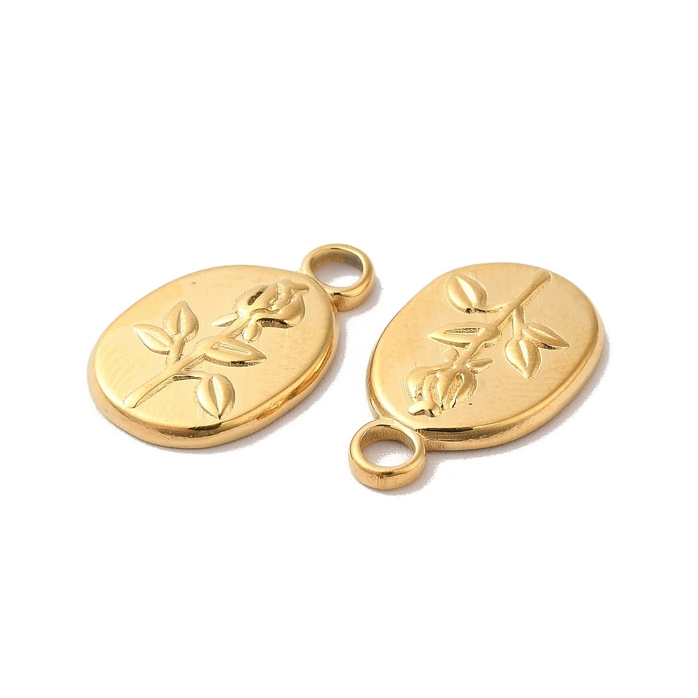 Stainless Steel Bedel Ovaal met Bloem Gold Plated 17x11x2mm
