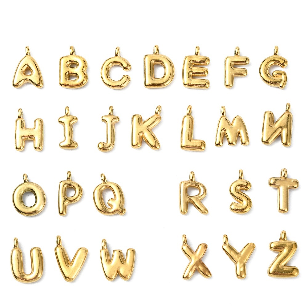 Stainless steel letter/initial bedel gold plated 18~20x9~15, per stuk