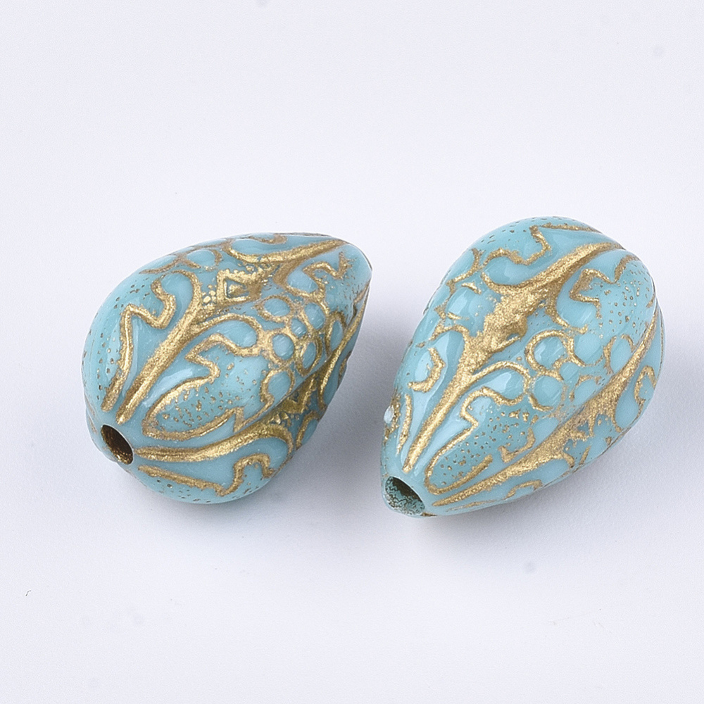 Vintage acryl kralen druppel turquoise 18.5x11mm